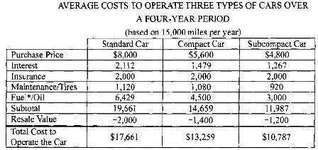 3.If the cost of oil is negligible, what is the mileage (average miles per gallon of fuel) of a compact car?