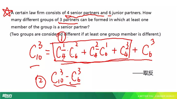 这里要进行分类讨论,可以用正向思维也可以用逆向思维思考,也就是至少一个senior的情况~