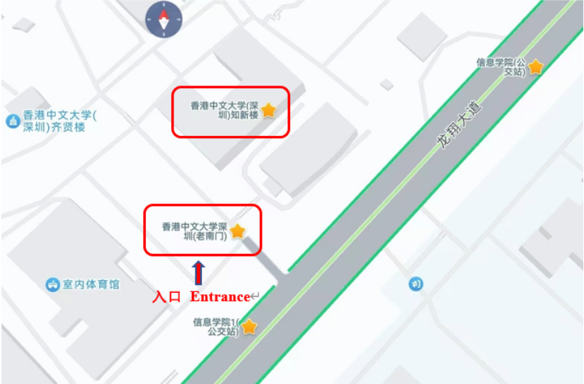 2) 考试入口:香港中文大学(深圳)老南门,导航到此即可(校门、考场所在大楼均有指示牌指向考场);